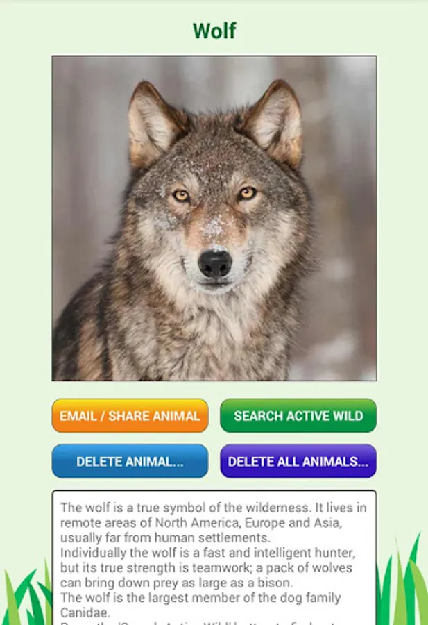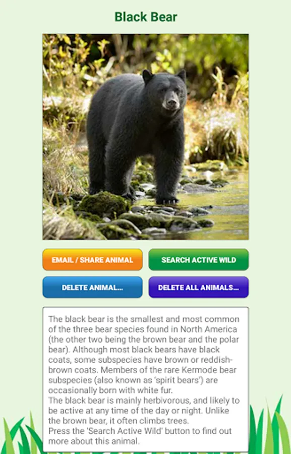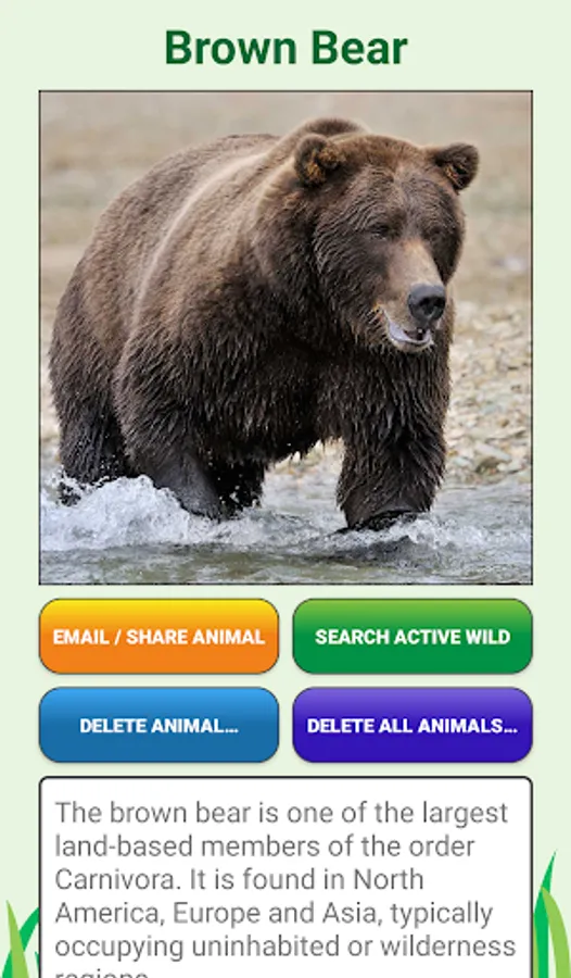 You can view all of the animals that you’ve found using the ‘View My Animals’ button on the main menu screen. Select an animal from the list to find interesting information about the species. You can also share the animal on social media or via email, or delete it from your list.