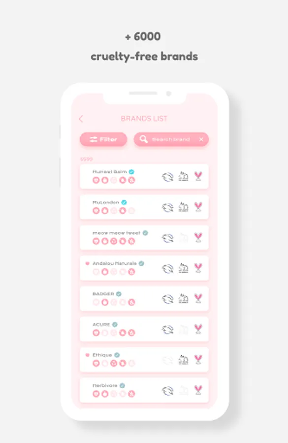 • +8000 brands: from official and reliable sources, including Leaping Bunny, PETA, Choose Cruelty Free.