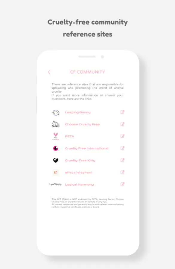 This APP(Tokki) is NOT endorsed by PETA, Leaping Bunny, Choose Cruelty Free, or any other brand in any way.