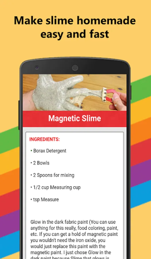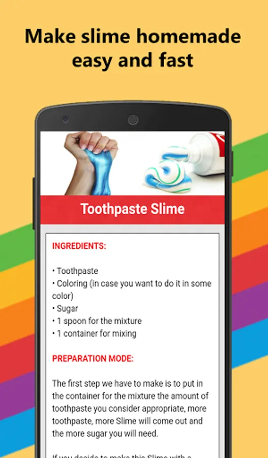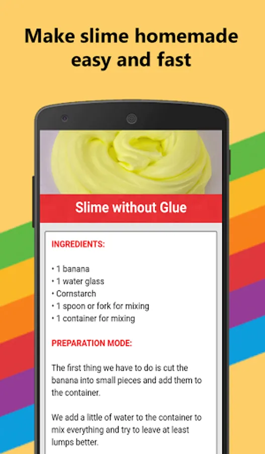 Enjoy creating that viscous mass so funny. In this application we teach you how to make a slime fast and easy.