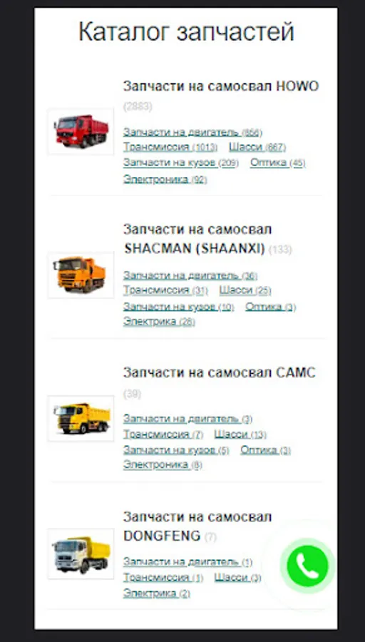The application is intended for the company's customers who are interested in spare parts for Chinese special equipment HOWO, SHACMAN, NORTH BENZ, CAMC, DONGFENG, XCMG