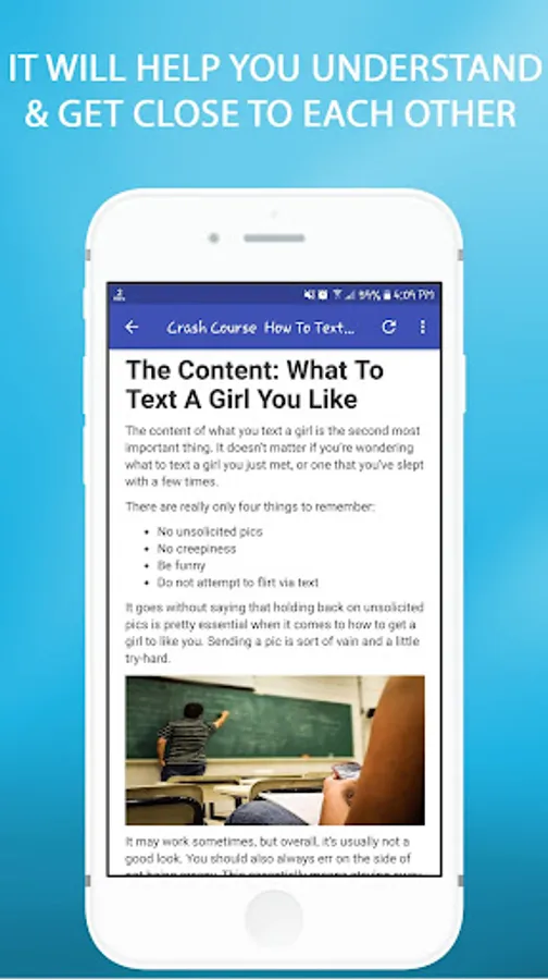 Either way, the amount, the frequency and content of your texts should always be taken into consideration. Too much of any one thing, and you’ll scare her off and make her think that you’re a creep. This tip and many more in our guide should help you get started quickly and the right way!