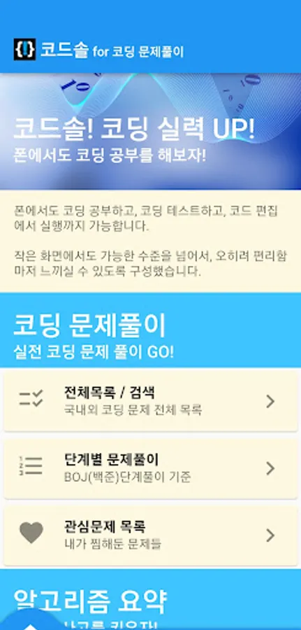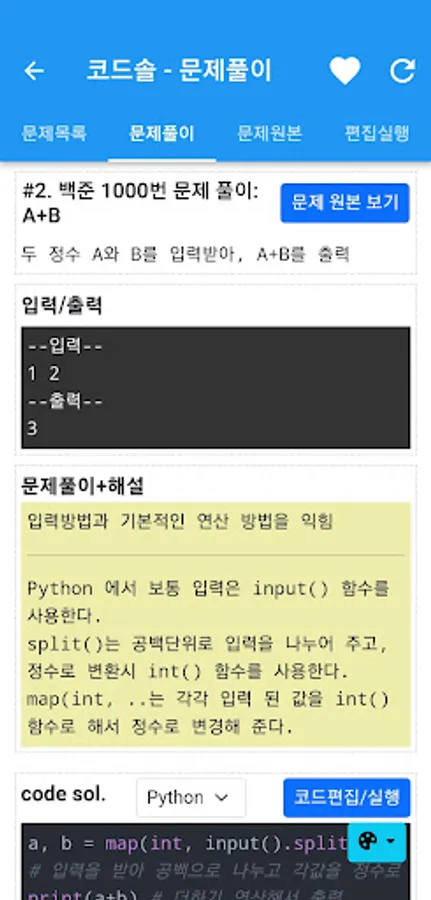 code sol. : Shows answer codes written in various languages such as Python / C / C++.
