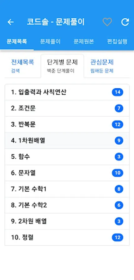We will show you a list of problem-solving standards divided into the most frequently accessed step-by-step solutions on the Baekjun problem site.