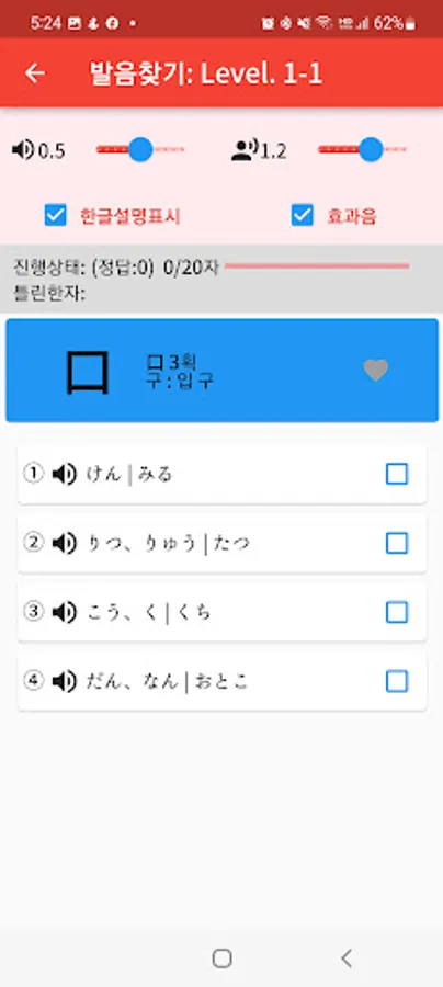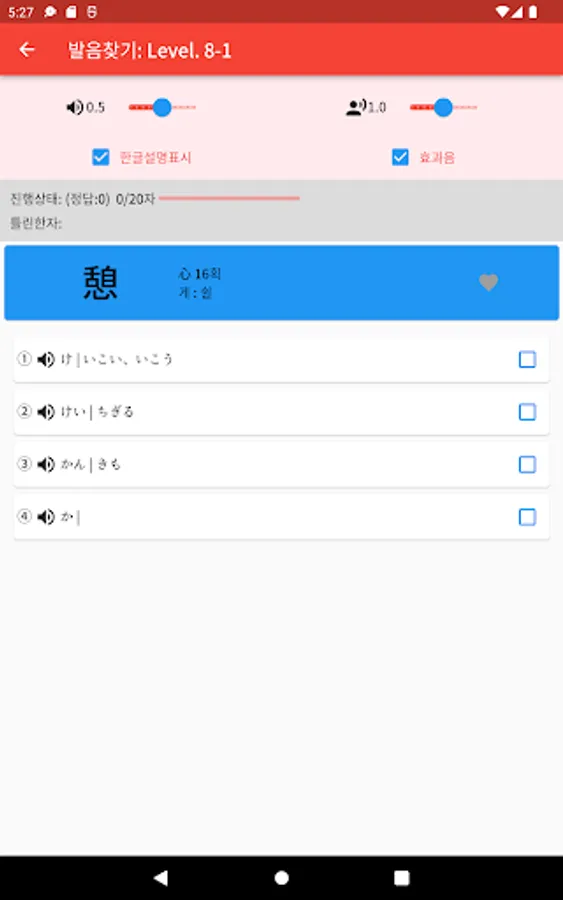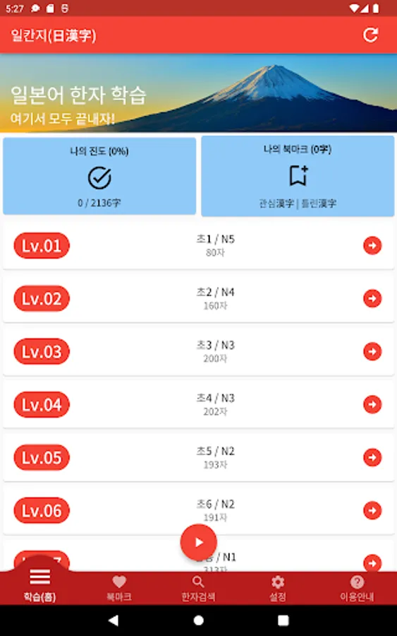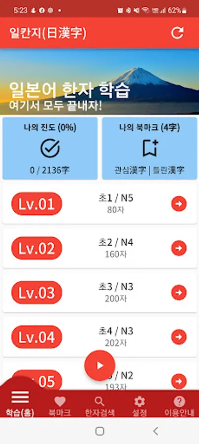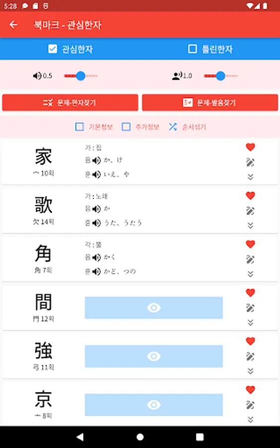 By selecting a bookmark, a function is provided that allows you to study or solve problems with only the Chinese characters you are interested in or wrong Chinese characters.