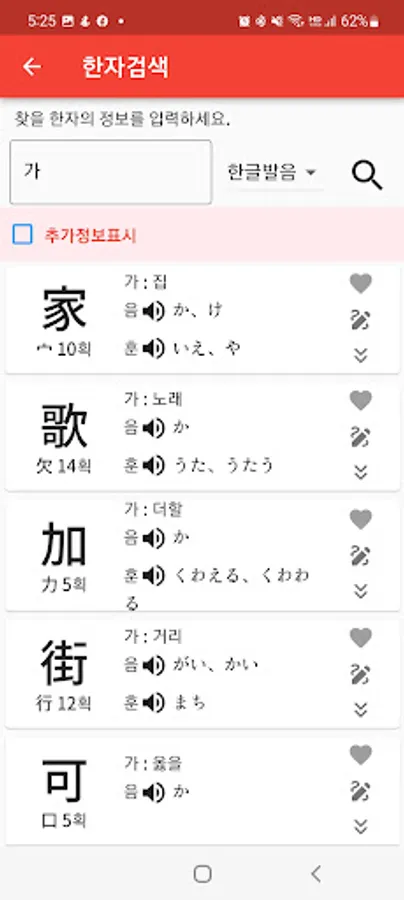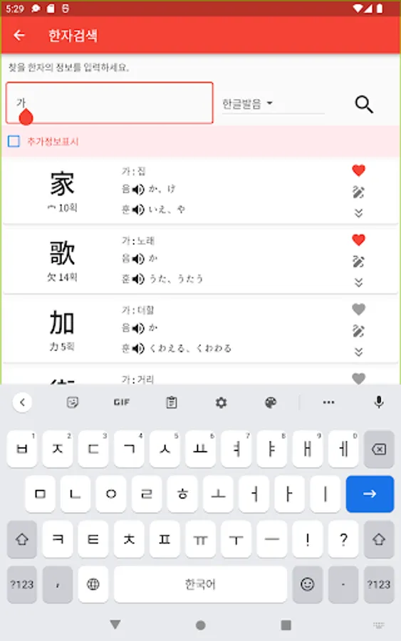 You can search by integrated search, Chinese characters, Japanese pronunciation, Korean pronunciation, Korean meaning, number of strokes, and number of copies.