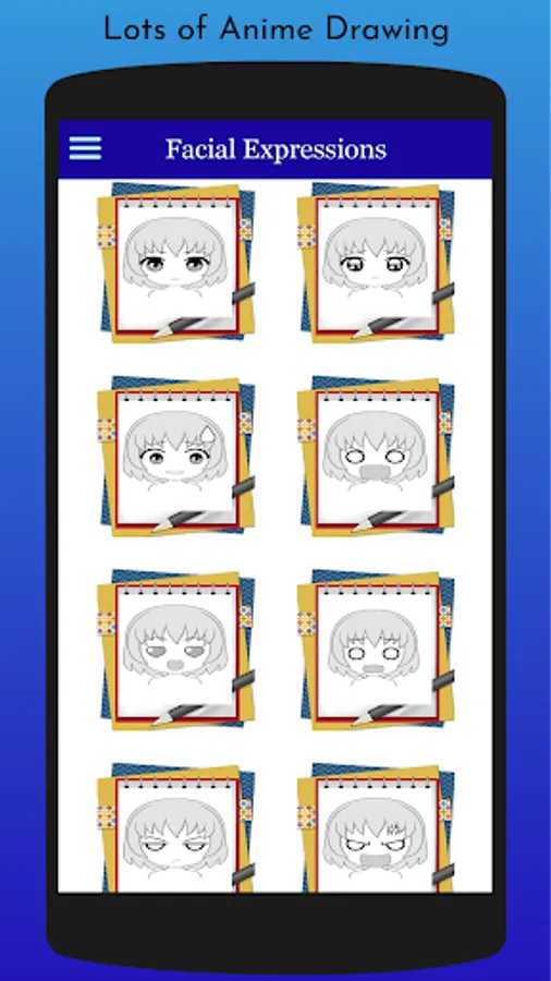 Do you want to draw anime chibi facial expression? Well, our app how to draw anime is worth to try. There will be lots of anime chibi drawing with various facial expressions in this app. All the anime drawing lessons are free to access.