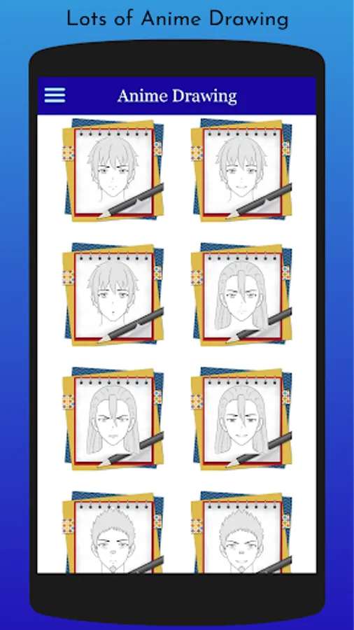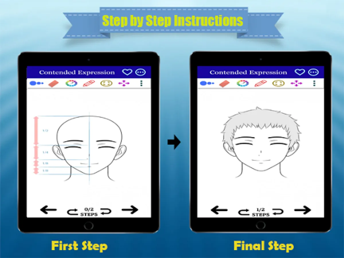 This anime male characters drawing specially intended for those who want to learn anime facial expressions. With this manga drawing app, you will easily imagine what and how you will draw anime male characters in every facial expressions.