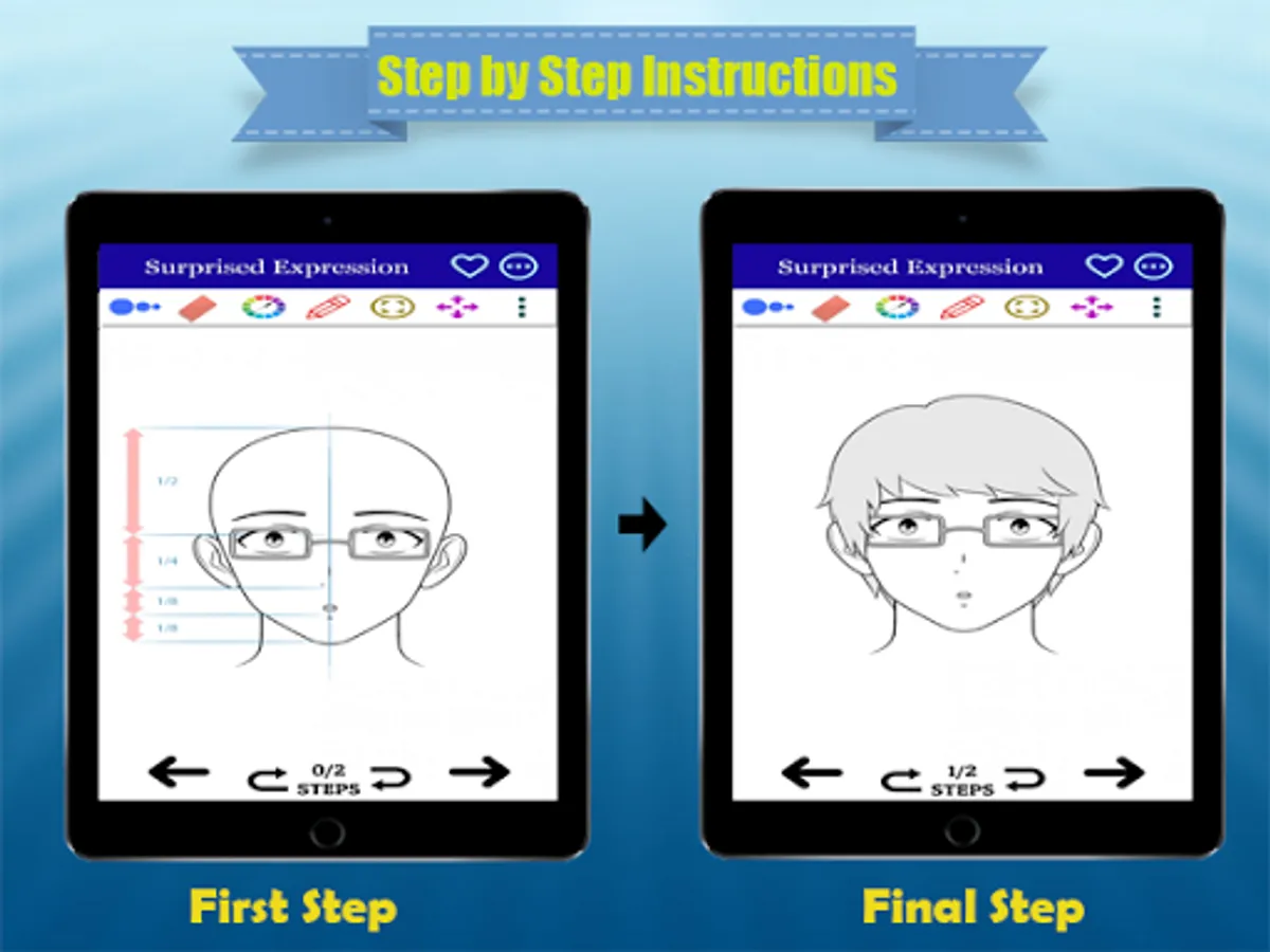 Our anime drawing app is easy to use. We can help you learn how to draw various facial expressions of anime by using an outstanding step-by-step instructions and comprehensive tutorial to draw. Do you want to surprise your friends with your awesome anime drawing or simply learn how to draw anime? Then our free beginner manga drawing tutorial is the best for you.