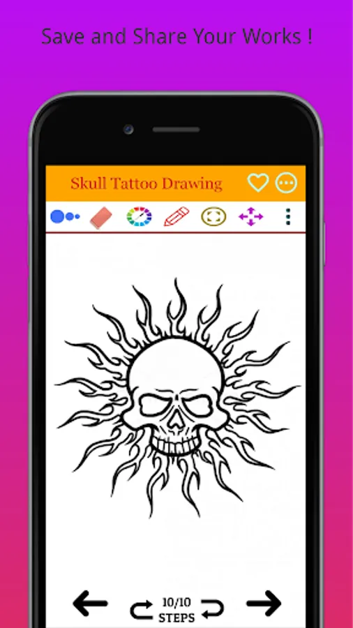 If you want to draw a tattoo, then you have found the best place. Our app will help you learn how to draw skull tattoo in easy ways. You don’t have to worry if you don’t know how to draw tattoo because our drawing tutorials are provided in step by step tattoo drawing guide. All you have to do is pick one of your favorite skull tattoo designs, and then follow the step by step guide.