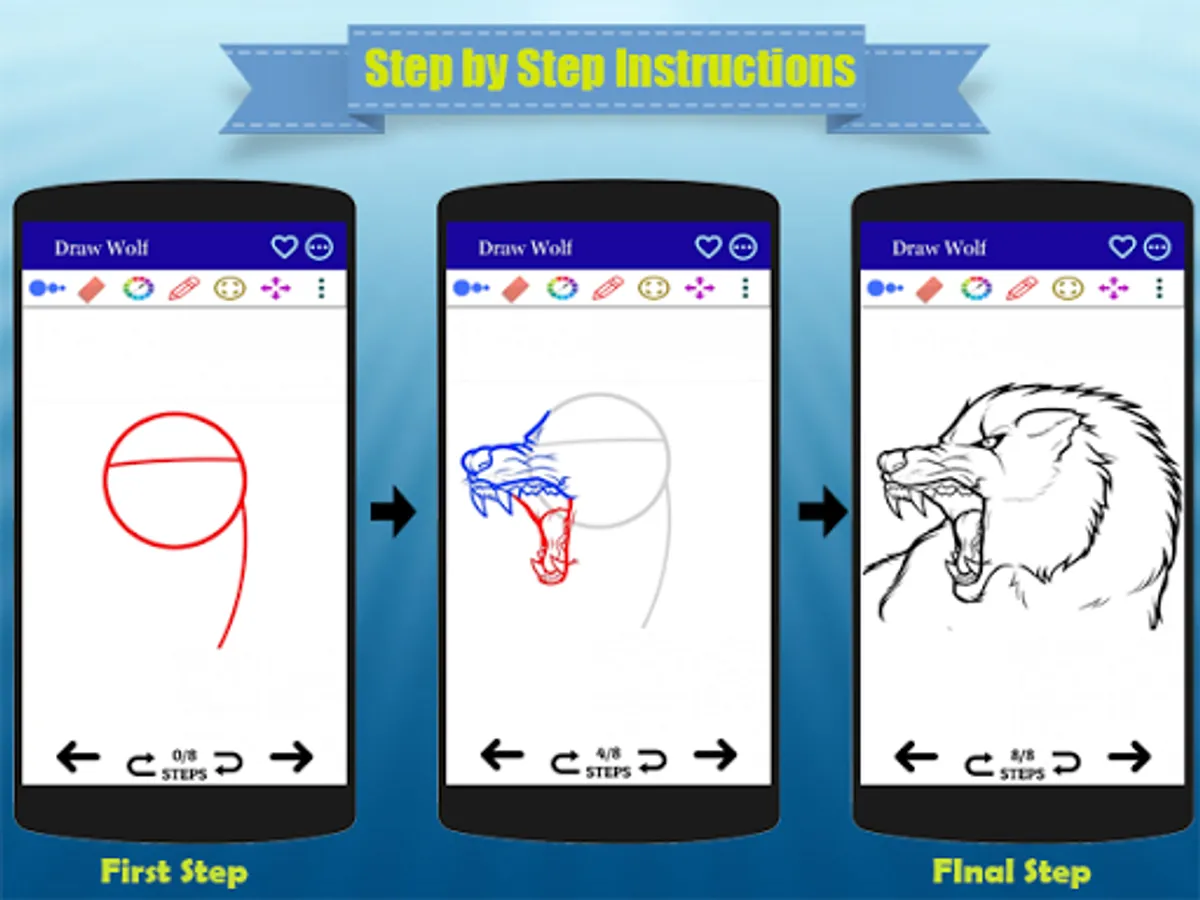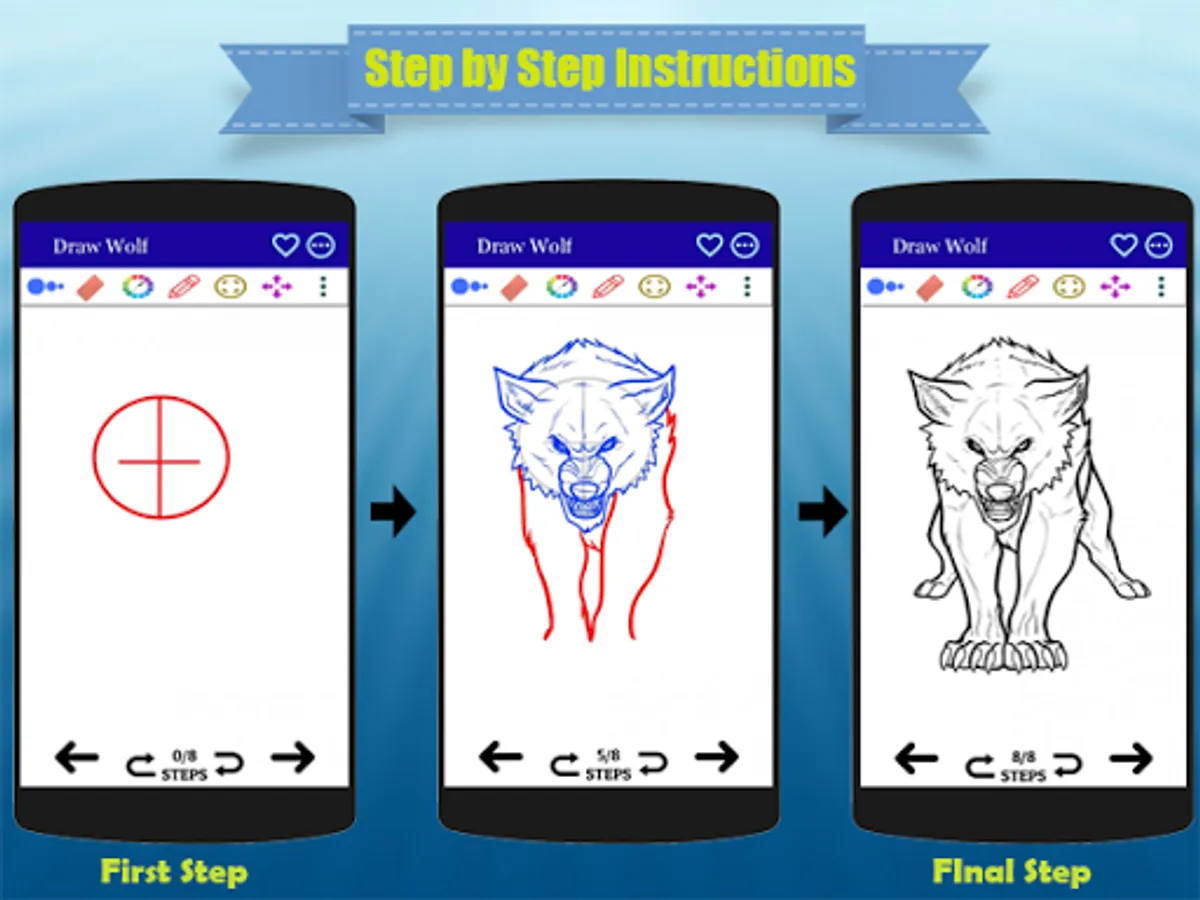 So, what are you waiting for? Download and install this art drawing art app to learn how to draw wolf step by step. Once you downloaded this drawing tutorials, you will be able to draw wolf quick and in easy ways.