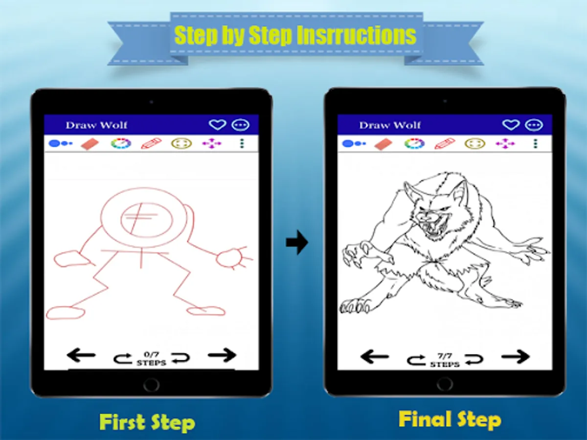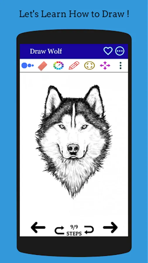 Through this drawing tutorial app, you are able to draw in easy ways. Download this wolf drawing tutorial, draw with friends then unleash your creativity through this professional drawing app.