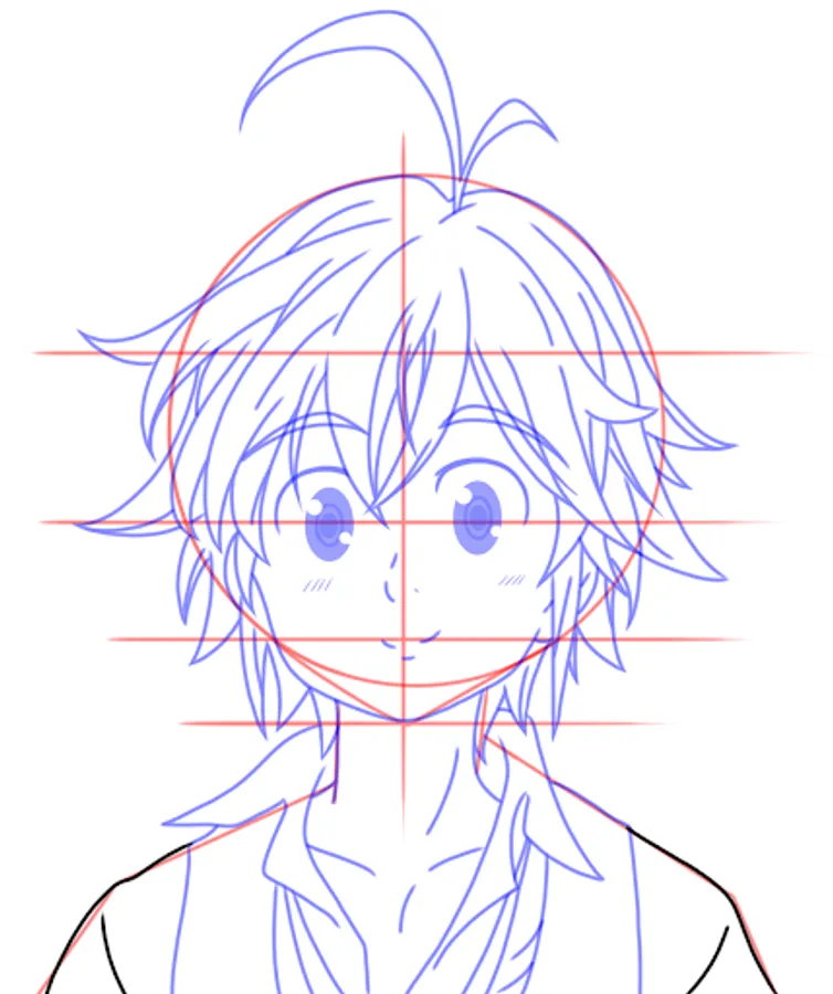 how to draw Nanatsu no taizai characters from head to shoulder step by step with 20 steps in each character