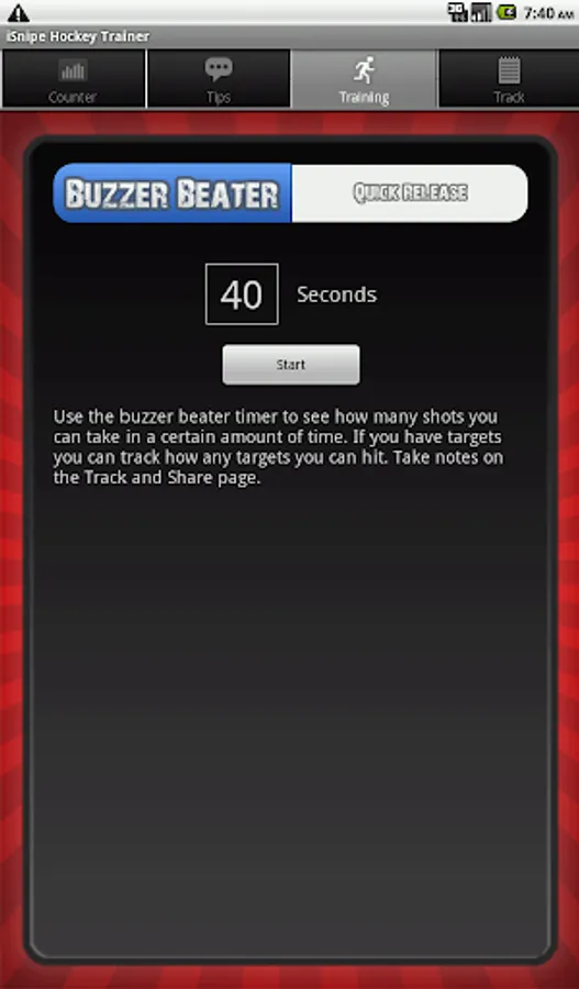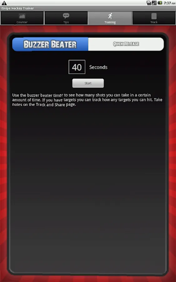 • Training - The app comes with two training tools, the buzzer beater and the quick release.