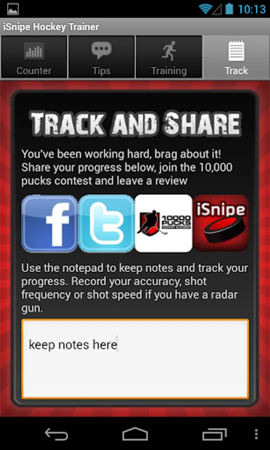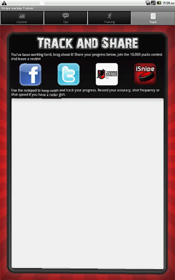 • Tracking - The app comes with a built in notepad that allows players to keep track of their achievements such as accuracy and shot velocity (if they have a radar