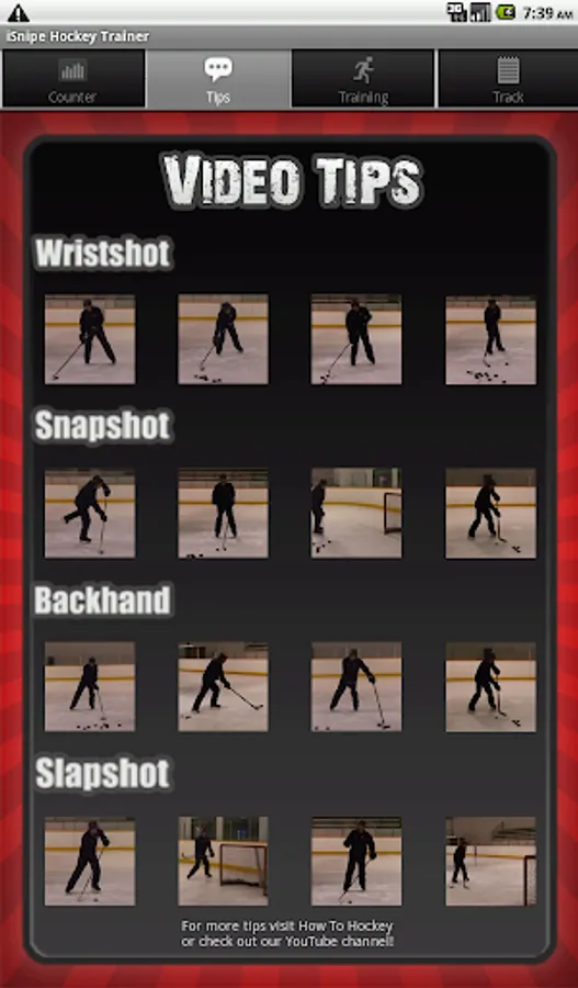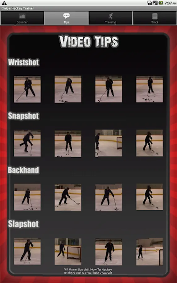 • Video Teaching Tips - The app comes with 4 shooting tips for each type of shot. The main video will teach proper technique, while the following three videos for