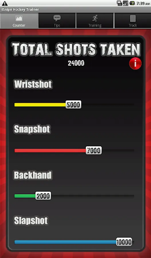 • Shot counting - The first screen allows players to input the number of shots they have taken. This encourages the players to continue shooting in an effort