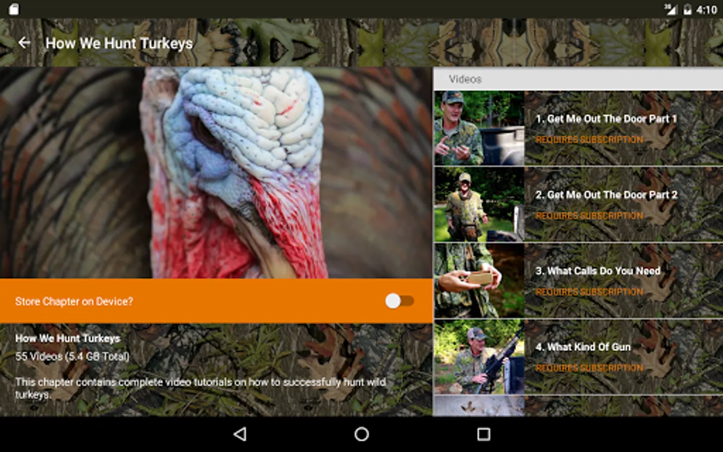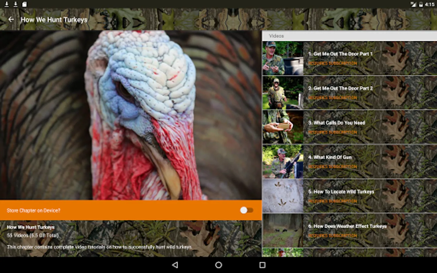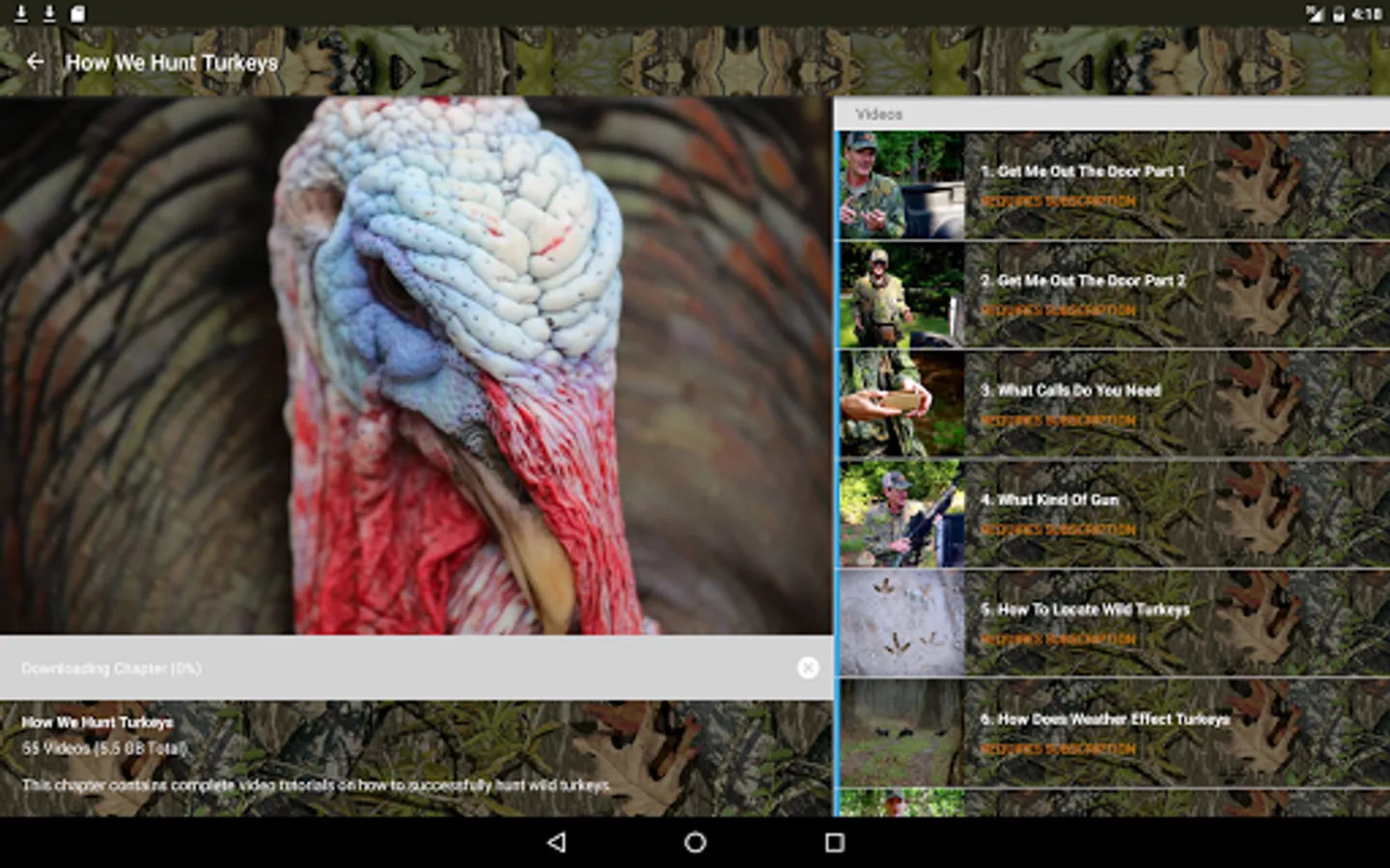 This app is designed to accompany you into the woods and assist you with no internet connection. Learn from one of the worlds most respected turkey hunters and bring unprecedented video tutorials with you into the field to use as reference while perusing your most favorite outdoor passion - wild turkey hunting.