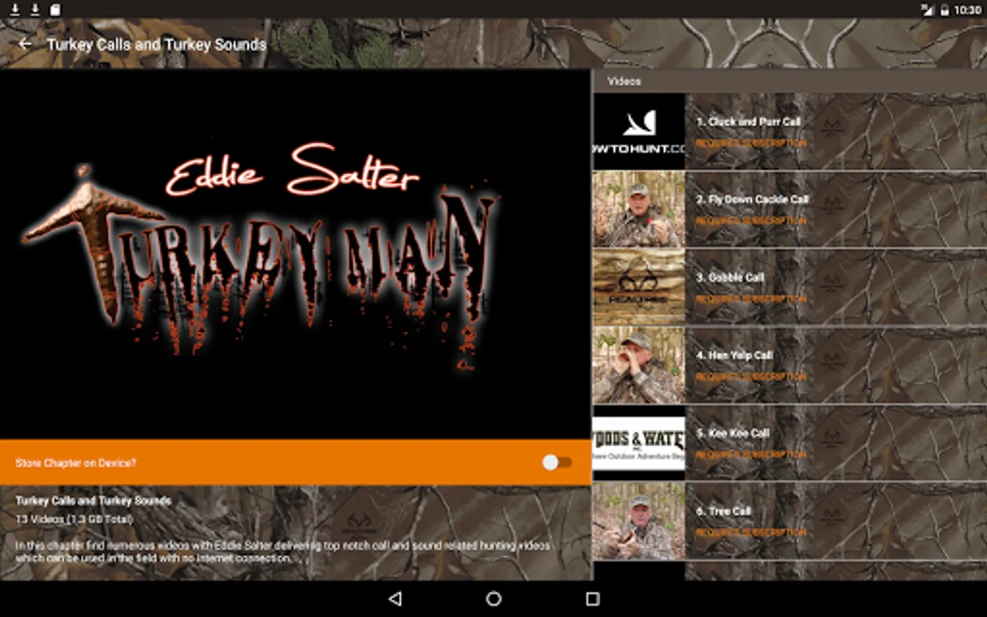 This is the anticipated 'Turkeyman' app. Finally, you can hunt every day and all season with Eddie Salter while utilizing all of Eddies life long collection of professional turkey hunting knowledge . Download for free, surf the content and subscribe for non stop video updates, tips and and current hunt conditions via Eddies action filled video updates.