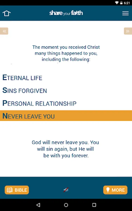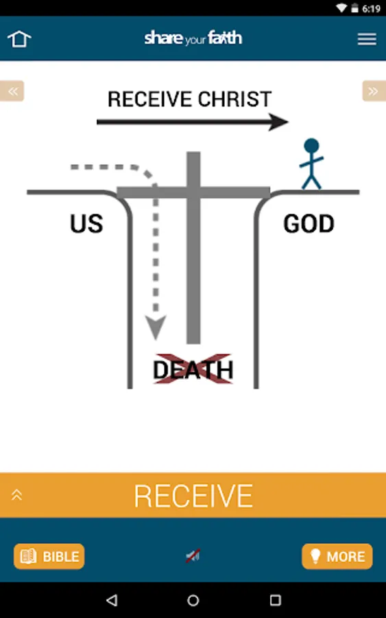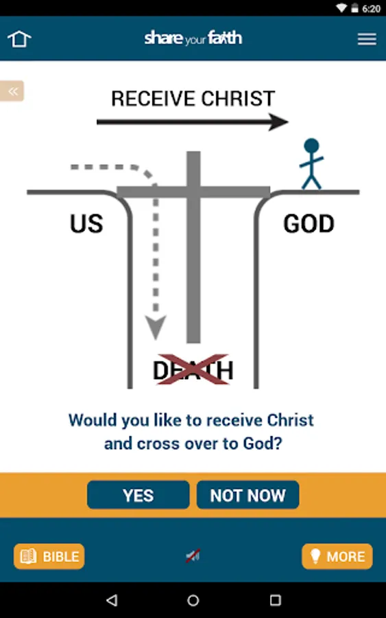 The Share Your Faith App helps you easily share the gospel of Jesus with others. The app will help you walk someone through the bridge diagram and help the make a decision for Christ..