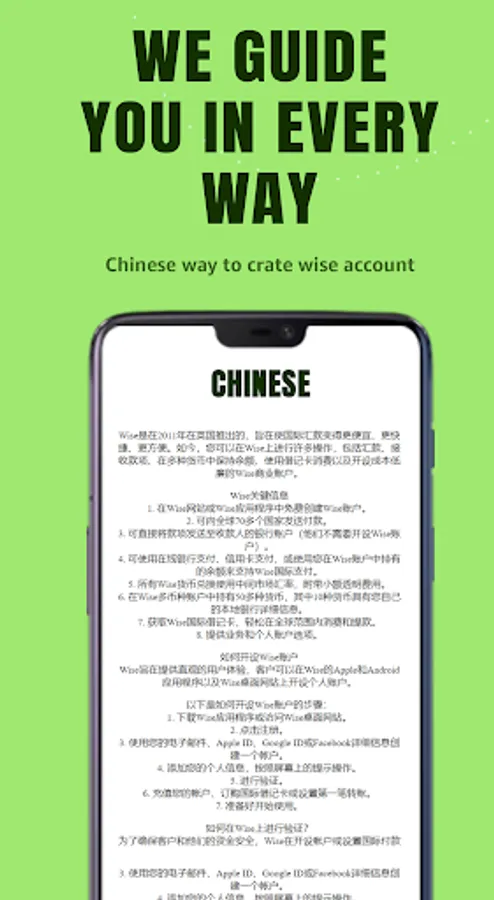 For those who don't know what Wise is, Wise is a bank account. This app is not for Wise. This app only tells you how to create Wise account. Most people do not know how to use Wise account. And these apps are not from Wise. This app is only for Education purposes and you can't create Wise account in this app.