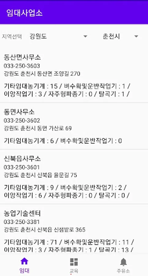 Find Farm Machinery app is an application that allows you to view agricultural machinery rental business information, gas station location, and farm related videos based on the'Public Data of the Ministry of Agriculture and Forestry'.