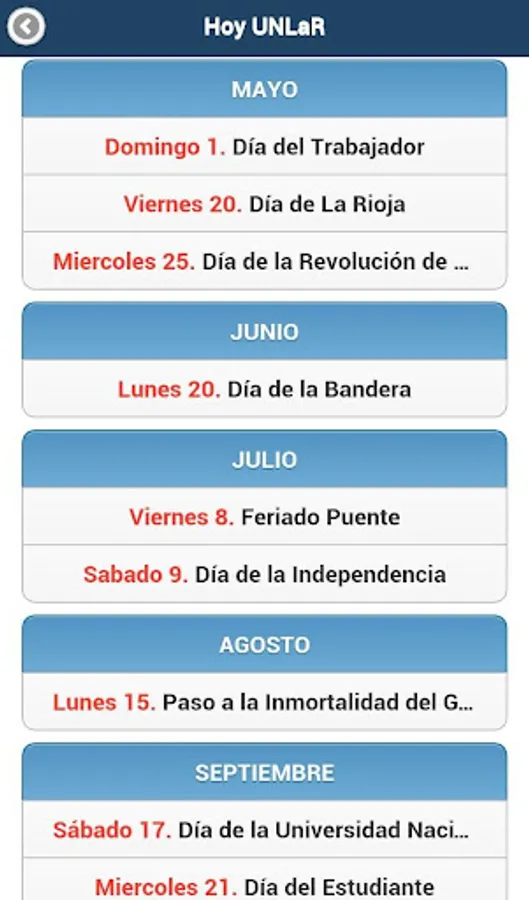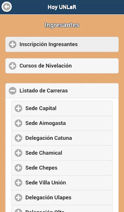 -The full list of careers offered by the UNLaR throughout the province of La Rioja.