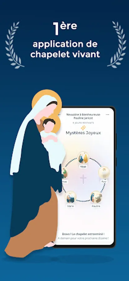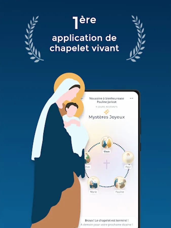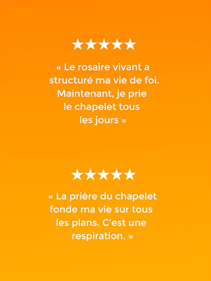 • Rosario invites you to meditate on the 20 mysteries in 20 days of using the application so that you can discover them all.