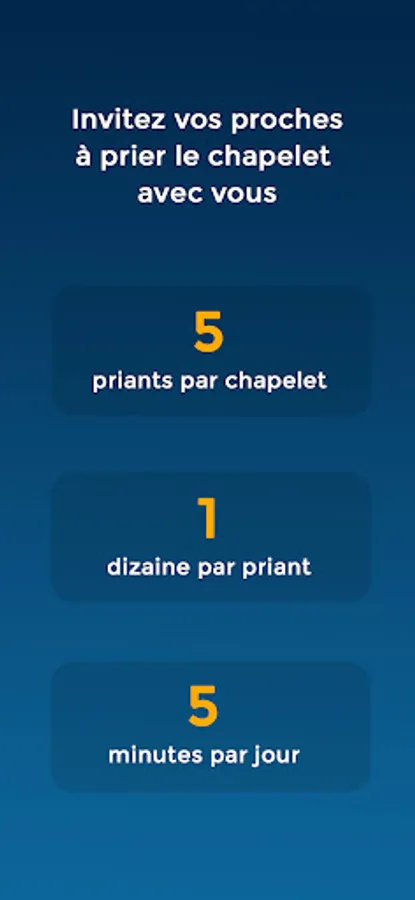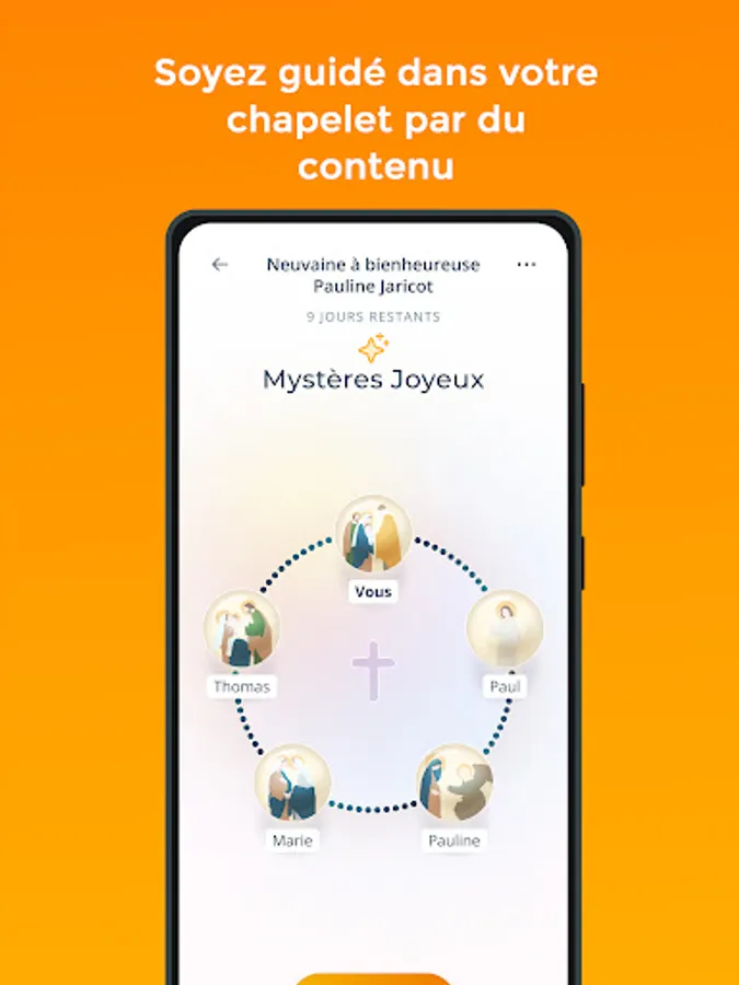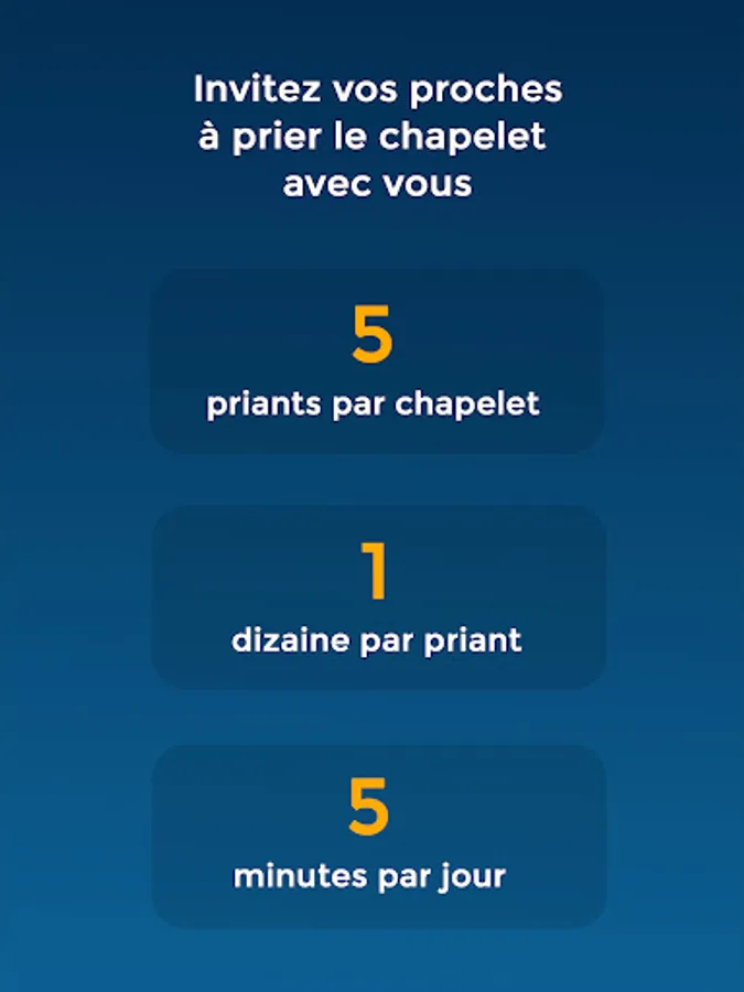 • Each day, the application automatically distributes the 5 mysteries of the day to meditate between the 5 members of the group.