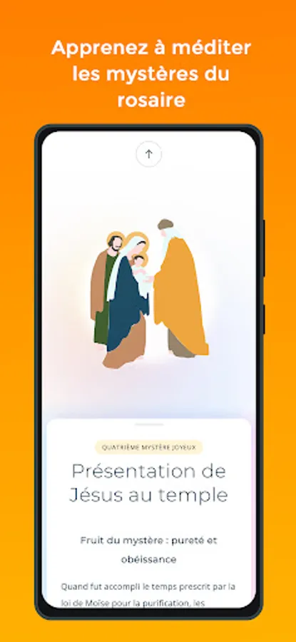 • For each mystery, the application reminds you of the title, the fruit as well as the references in the Gospels.