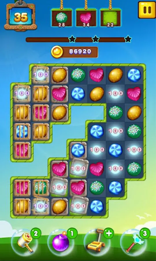 Create sweet boosters to achieve highest score and win 3 stars with each puzzle.