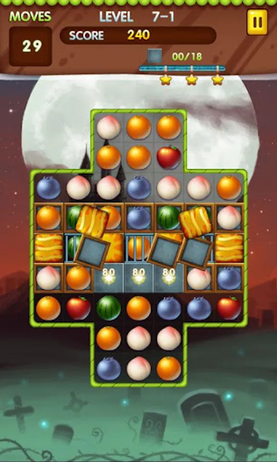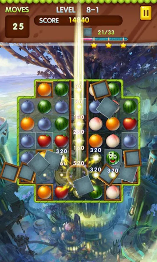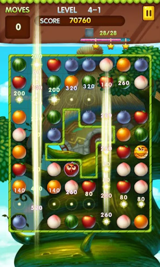 Make matches of 3 or more fruits or candies, create fruit or candy blasts.