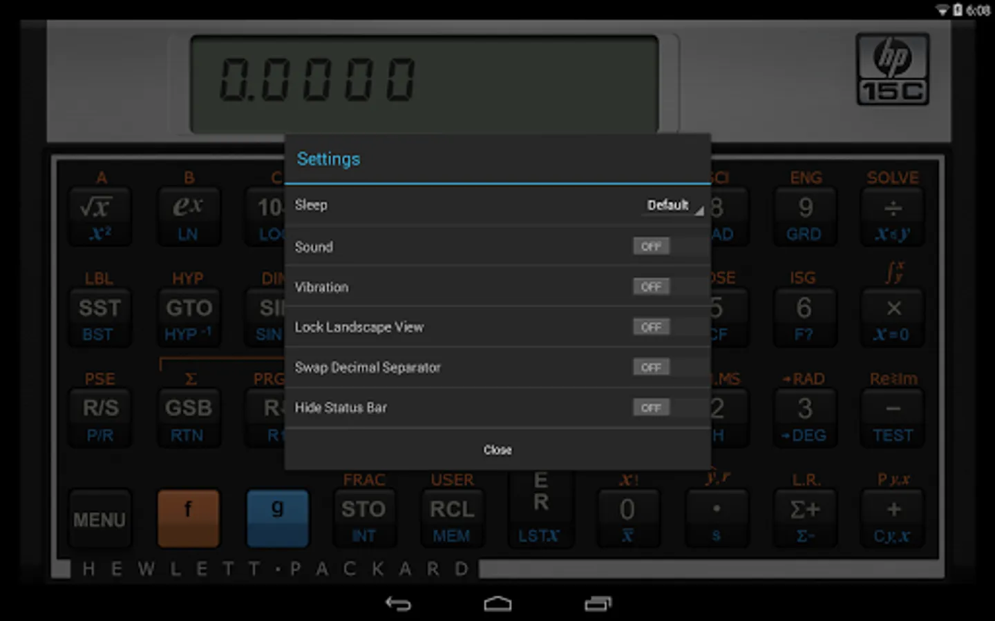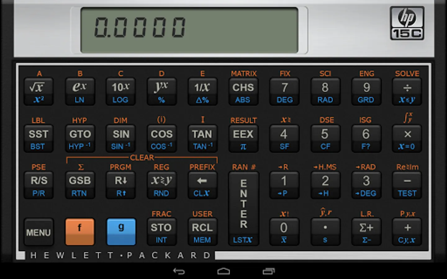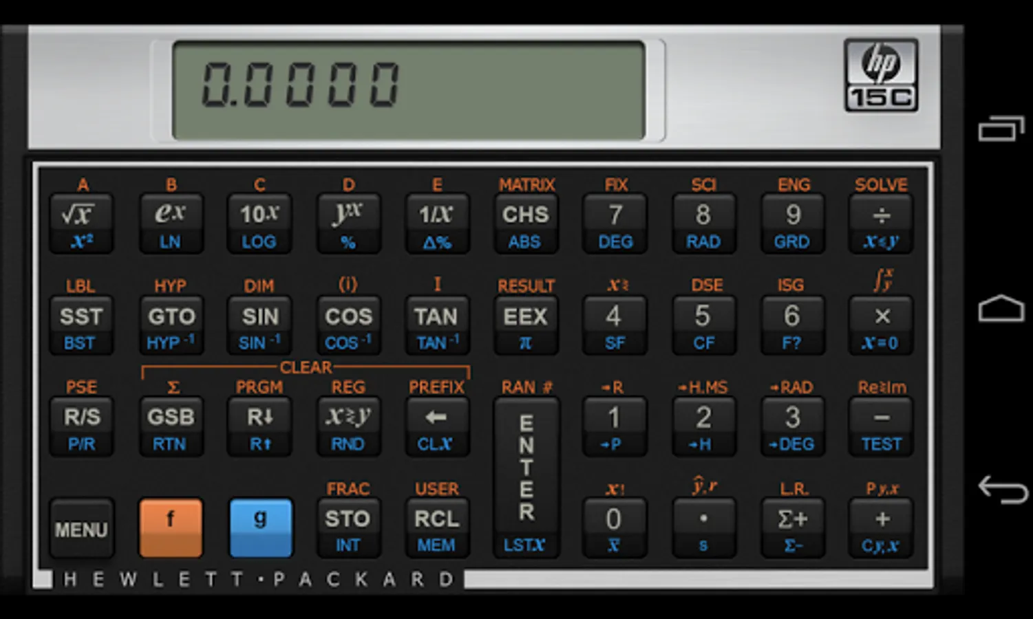 Developed by HP, the HP 15C Android Calculator App is an exact replica of the original layout, functions, algorithms and calculation sequences you trusted to help you through college and your career. When you find yourself without your HP 15C scientific calculator, relax – just open it on your favorite Android device.