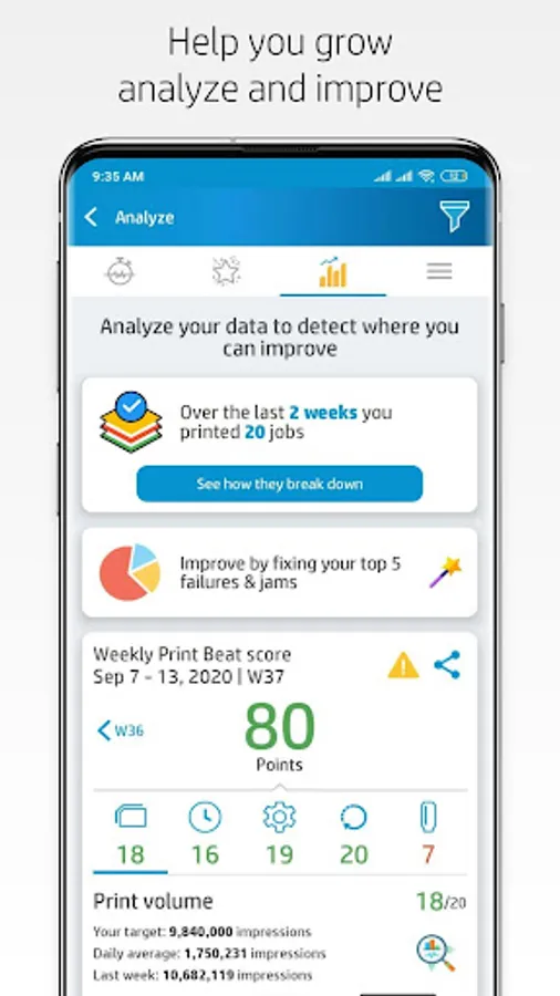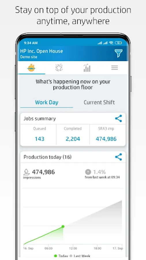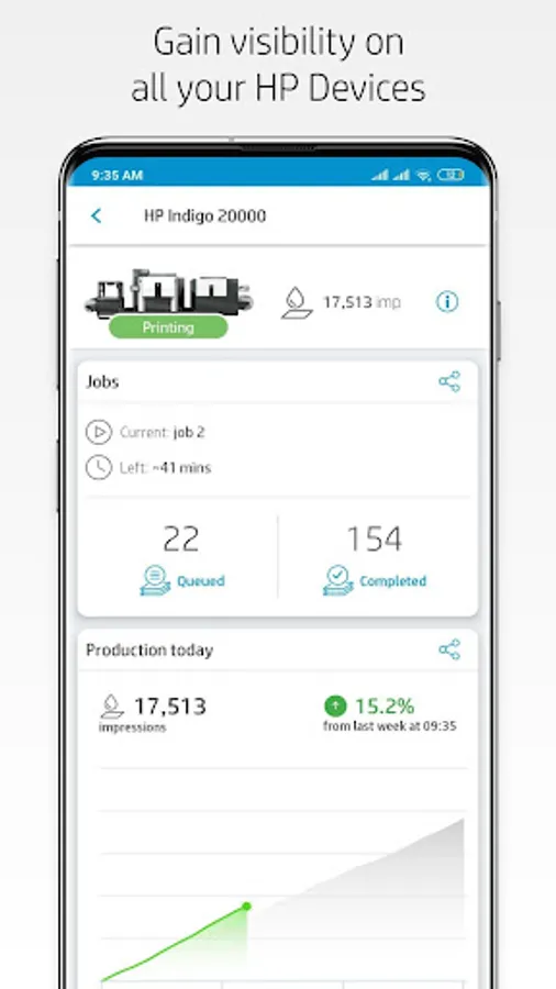 But this isn’t just about getting a snapshot of what’s going on in the moment. The HP PrintOS Mobile app provides accurate historical data and production trends, a view into your fleet’s current status, and insights into what you can do to optimize its performance moving forward. Tap into the advantages: