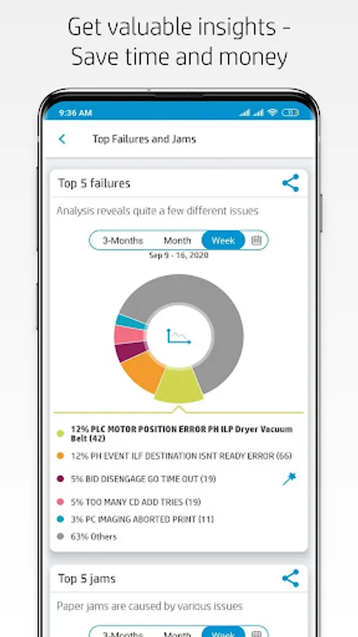 Gain visibility into your HP connected printers to observe trends, stay on top of daily projects, and make data-driven decisions—even when you’re not physically on the premises. Get the information you need, literally at your fingertips, to drive press and production improvements today and over time.