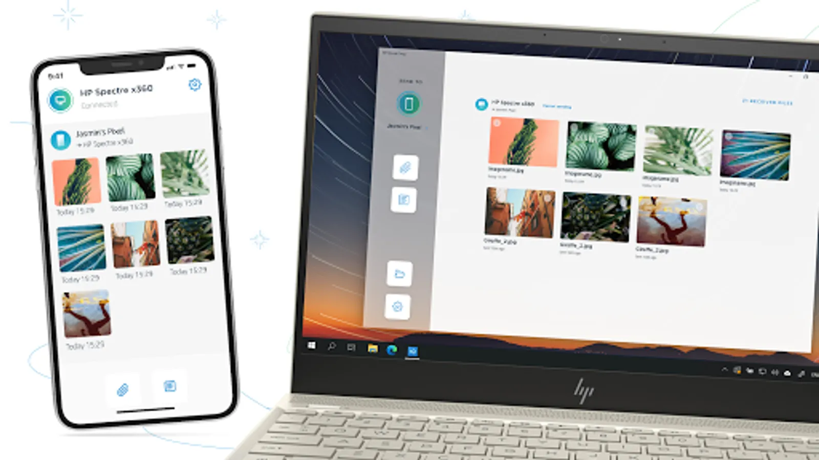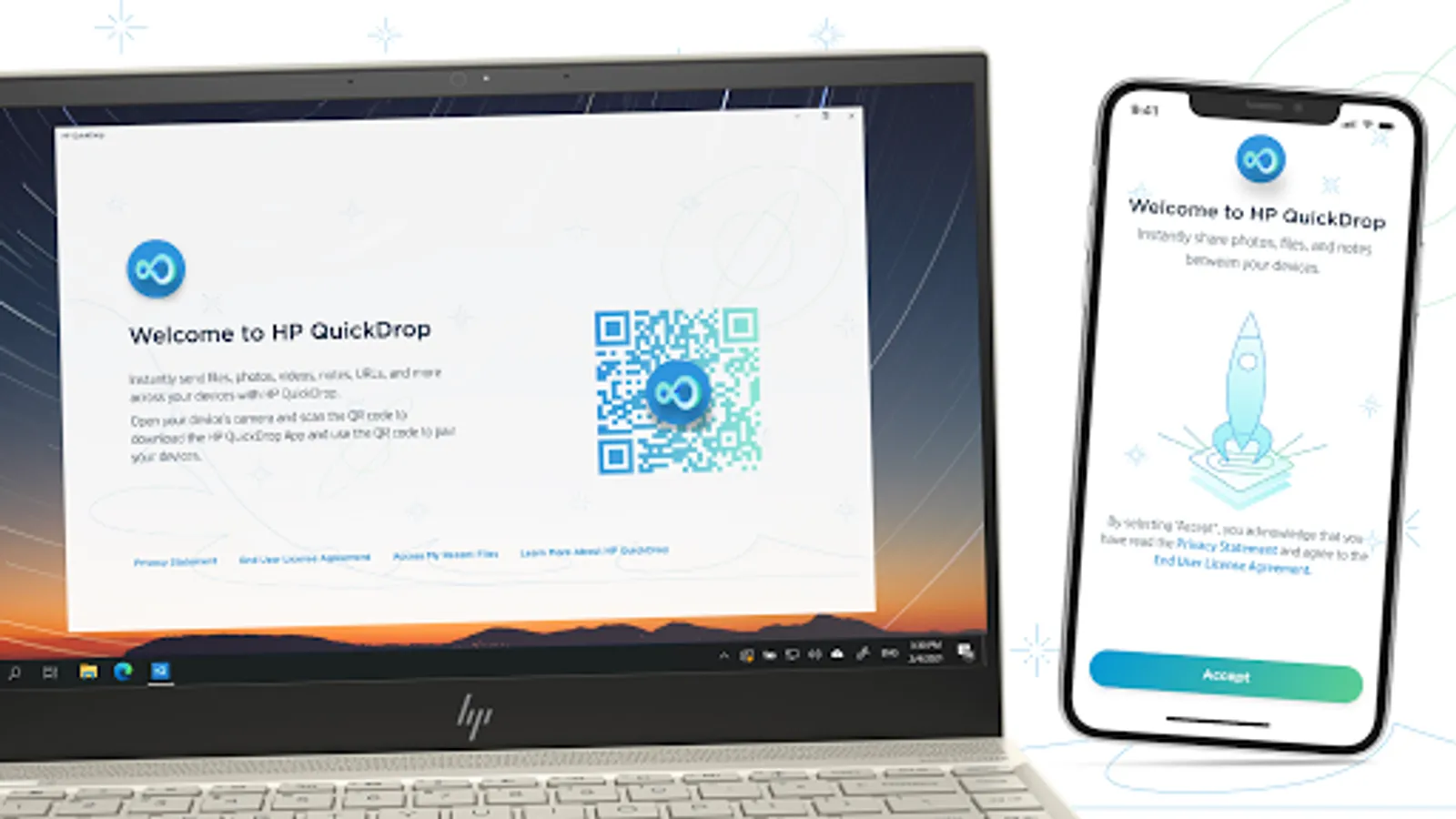 Quickly and securely transfer photos, videos, music files, documents, URLs, and more between your HP PC, Android, or iOS phones and tablets with the push of a button. Forget the hassle of emailing photos, compressing videos, or waiting around for your cloud files to update. HP QuickDrop transfers media and text in a flash, giving you more time to focus on what matters. No need for cables or Bluetooth, you can transfer files between your devices no matter the distance. Pair multiple devices at once to share between all of your devices.