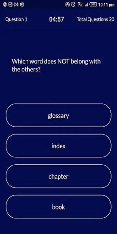 - There is a 4 minute window in which users have to answer their questions within. Should a user fail to answer all questions before the timer countdown, the test ends and their result is automatically generated.