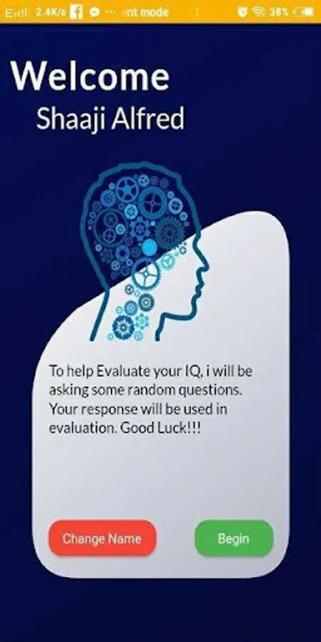 - After download, users enter their name in the name field and proceed to take a test.