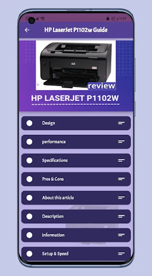 The HP LaserJet P1102w Wifi Guide application contains many information and features of the HP LaserJet P1102wPrinter that you can get clearly and easily.