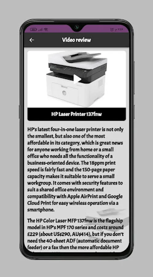 Through the application of the HP Laser Printer 137fnw business printer, you can learn about the many specifications of the wonderful printer HP Laser Printer 137fnw easily through the application