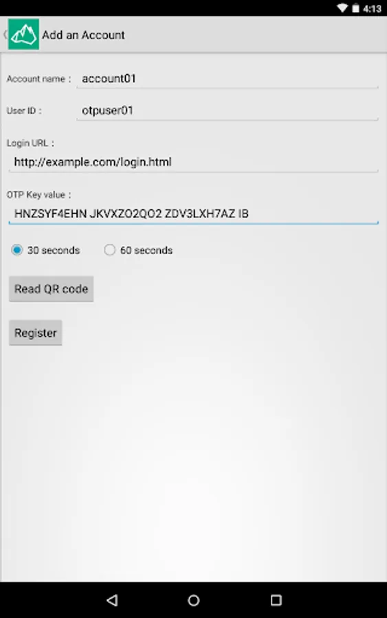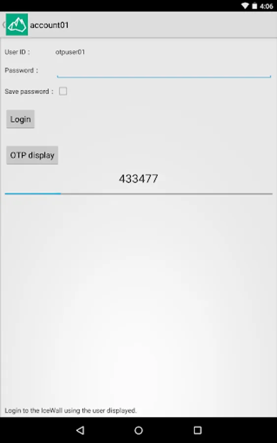 HPE IceWall Smart OTP is an application for smartphones that allows you to perform multi-factor authentication by entering the OTP(One Time Password). Only once at the beginning, you need to do registration of User Account and key of OTP on the smartphone. When you enter the User password in the login page, you can login to the Web sites using the OTP. OTP of HPE IceWall Smart OTP is compliant with OATH.