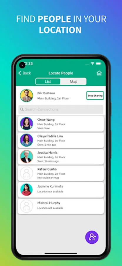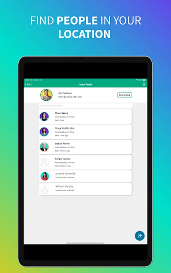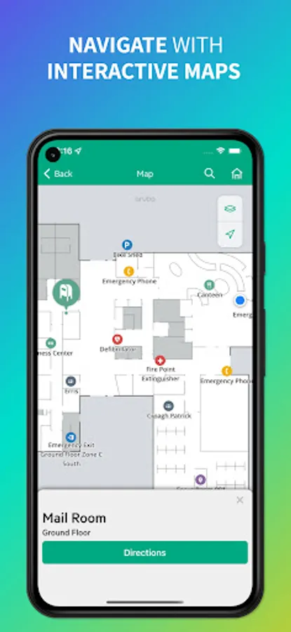 - Find your colleague’s location and locate meeting rooms and building amenities