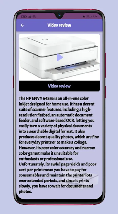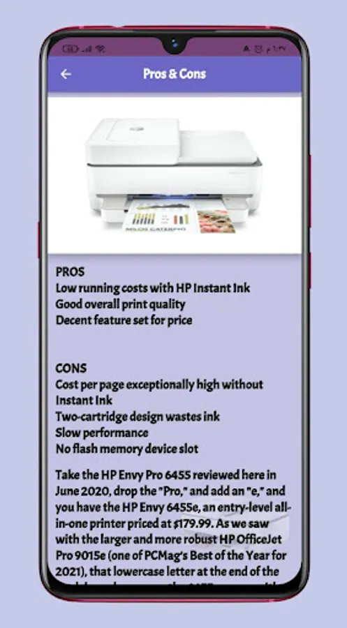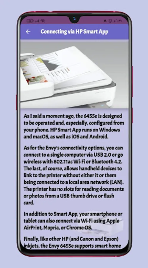 In the HP ENVY 6055e Wireless Printer app, we have supported several sections of content that will now allow you more information about the HP ENVY 6055e Wireless Printer