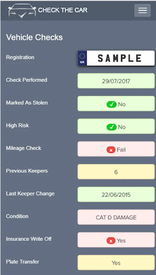 Check The Car allows you to discover any hidden vehicle history before you decide to buy a vehicle.