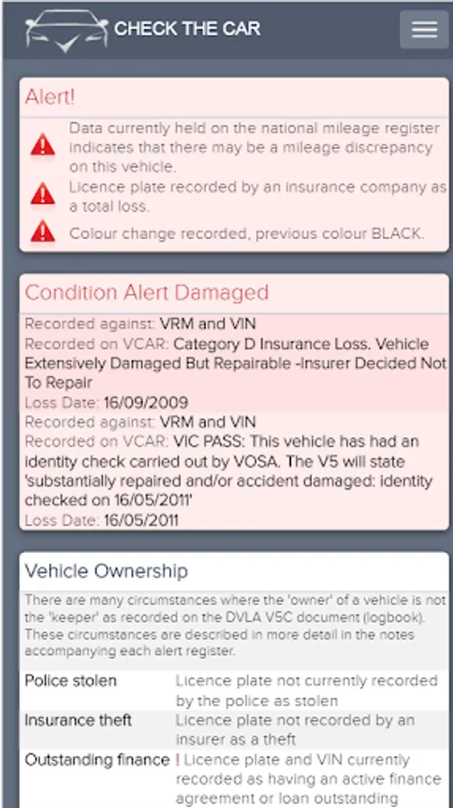 Check The Car app allows you to discover any hidden vehicle history before you decide to buy a vehicle.