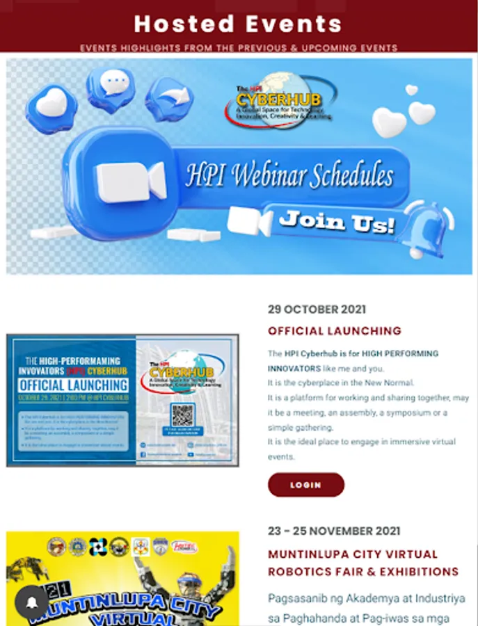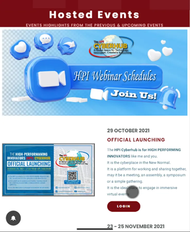 The HPI Cyber Hub is for High Performing Innovators like you and me. It is the cyber place in The New Normal. It is a platform for working and sharing together, may it be a meeting, an assembly, a symposium, or a simple gathering. It is the ideal place to engage in immersive virtual events.