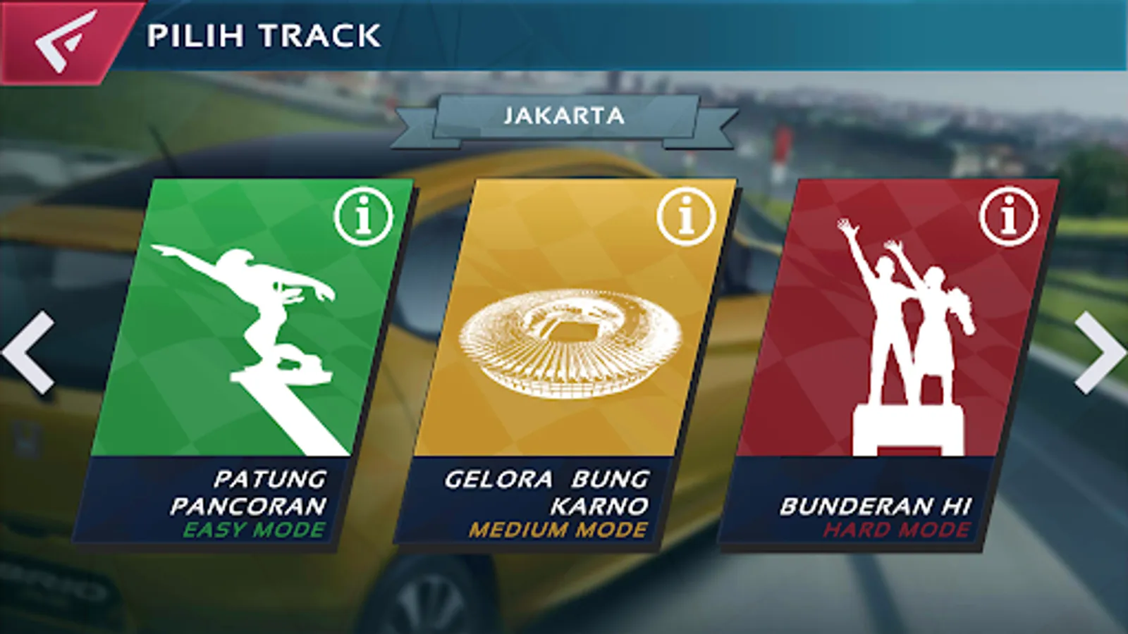 Rasakan pengalaman berkendara yang mengesankan dengan pilihan trek yang berlatarbelakang kota-kota besar di Indonesia, mulai dari Jakarta, Bandung, Semarang, Surabaya, Makassar, Banjarmasin dan Medan.