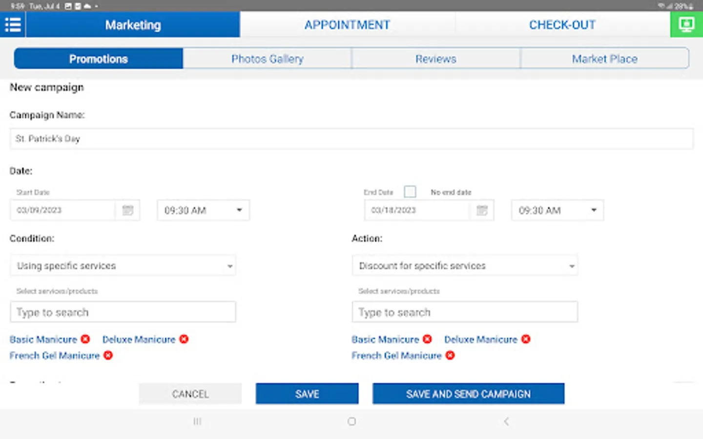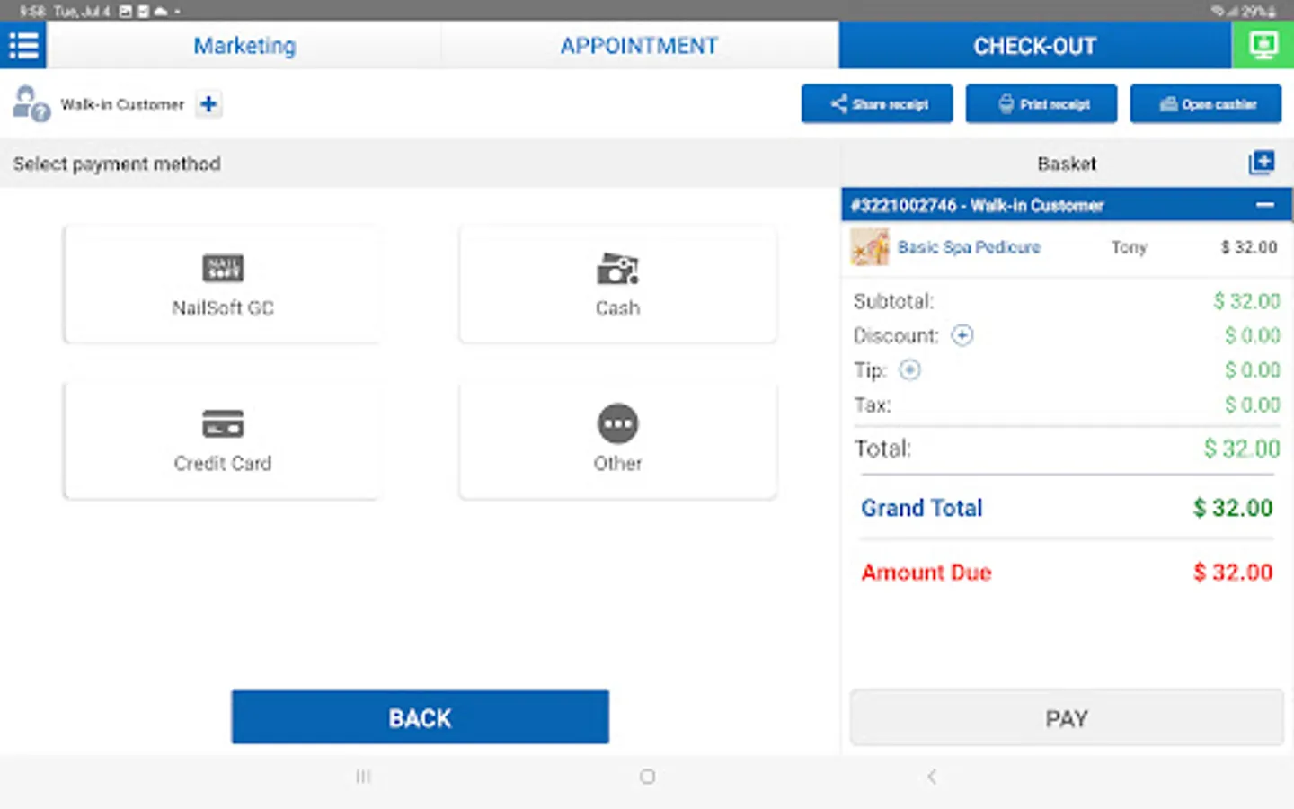 Made for salon owners by salon owners. One integrated app to help busy merchants juggle appointments, payment processing, marketing, and customizable programs like gift cards and reward points. Optimize your time with interactive booking, automatic check-ins, and easy wait-lists. Process payments the way you've always wanted to including split tipping, group check-out, and customizable receipt headers. Build your own rewards points, gift card systems, and push live deals to maximize your profits.