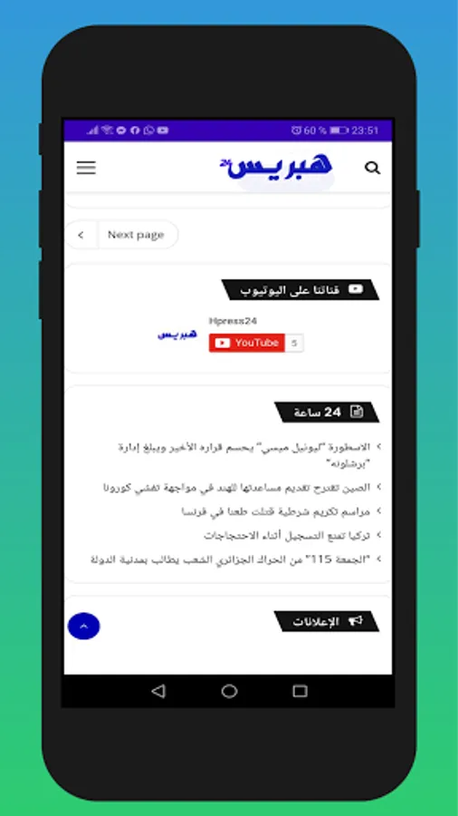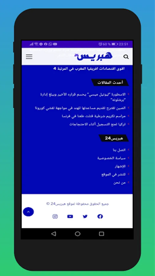 The "Hebriss 24" application enables access to the latest breaking news and the most important Arab and international events as they happen. In addition to watching the channel's programs and other reports, the application provides the following services: