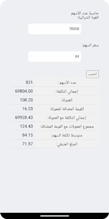 The stock calculator app allows you to perform many important calculations while trading. You can calculate the expected cost of buying or selling by taking into account fine details such as trading commission and tax on trading commission. You can also calculate the total transaction cost and average buying or selling price.